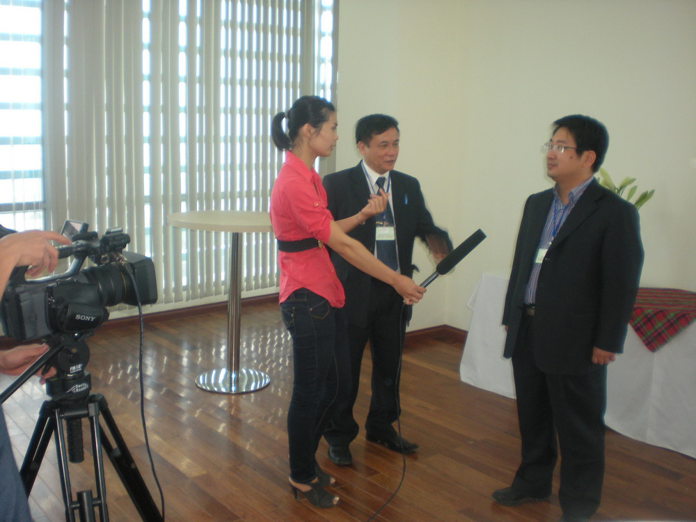 研討會期間,葛立武副總裁還接受了越南中央電視臺第一頻道VTV1關于“余熱發電技術市場前景及中材節能在越南開展余熱發電項目模式”的專題采訪。葛立武副總裁圍繞主題簡要介紹了余熱發電系統在節能減排事業中舉足輕重的地位,同時回答了記者朋友們關心的“如何在越南開展余熱發電項目”的提問。
