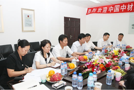 譚總一行是在參加完當(dāng)天上午中材礦山建設(shè)有限公司揭牌儀式后來(lái)到中材節(jié)能視察指導(dǎo)工作的。
